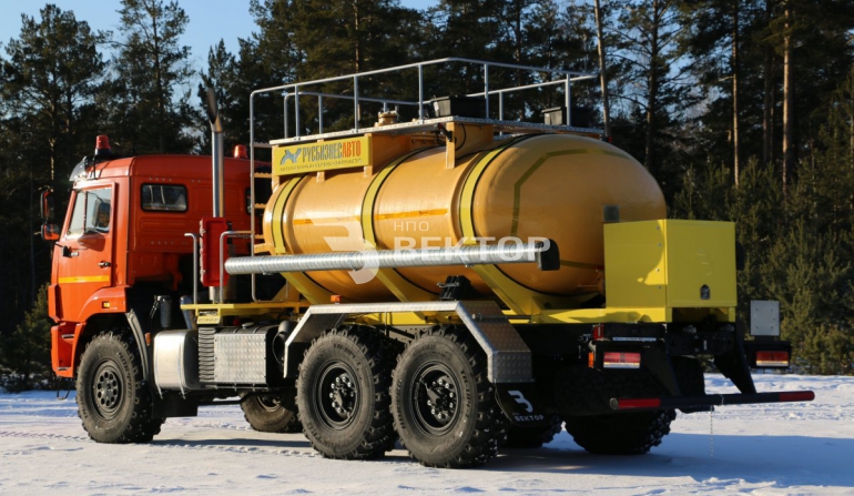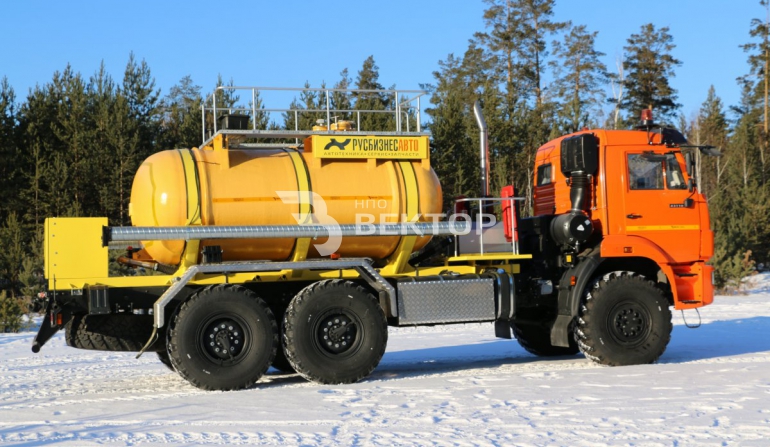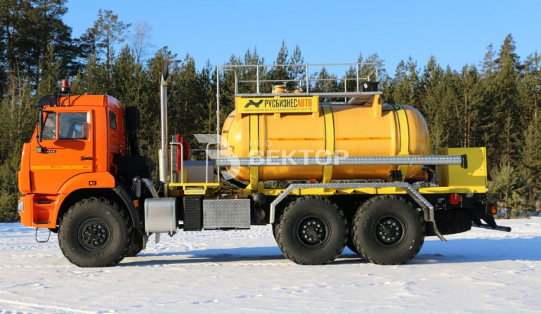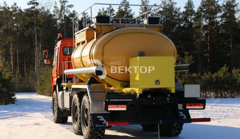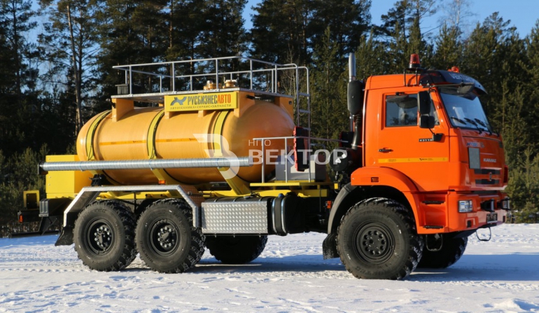 Цистерна установлена на шасси КАМАЗ-43118. Шасси оснащено гидрофикацией для подключения насоса.