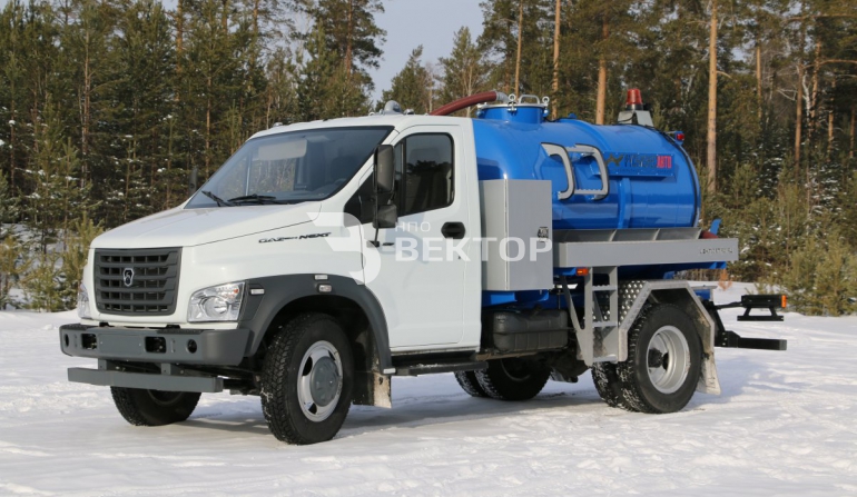 Вакуумная ассенизаторская машина МВ-4 на базе ГАЗ NEXT используется для сбора жидких отходов, откачки воды, их транспортировки к месту утилизации, а также для заполнения, транспортировки и выгрузки любых технических жидкостей.